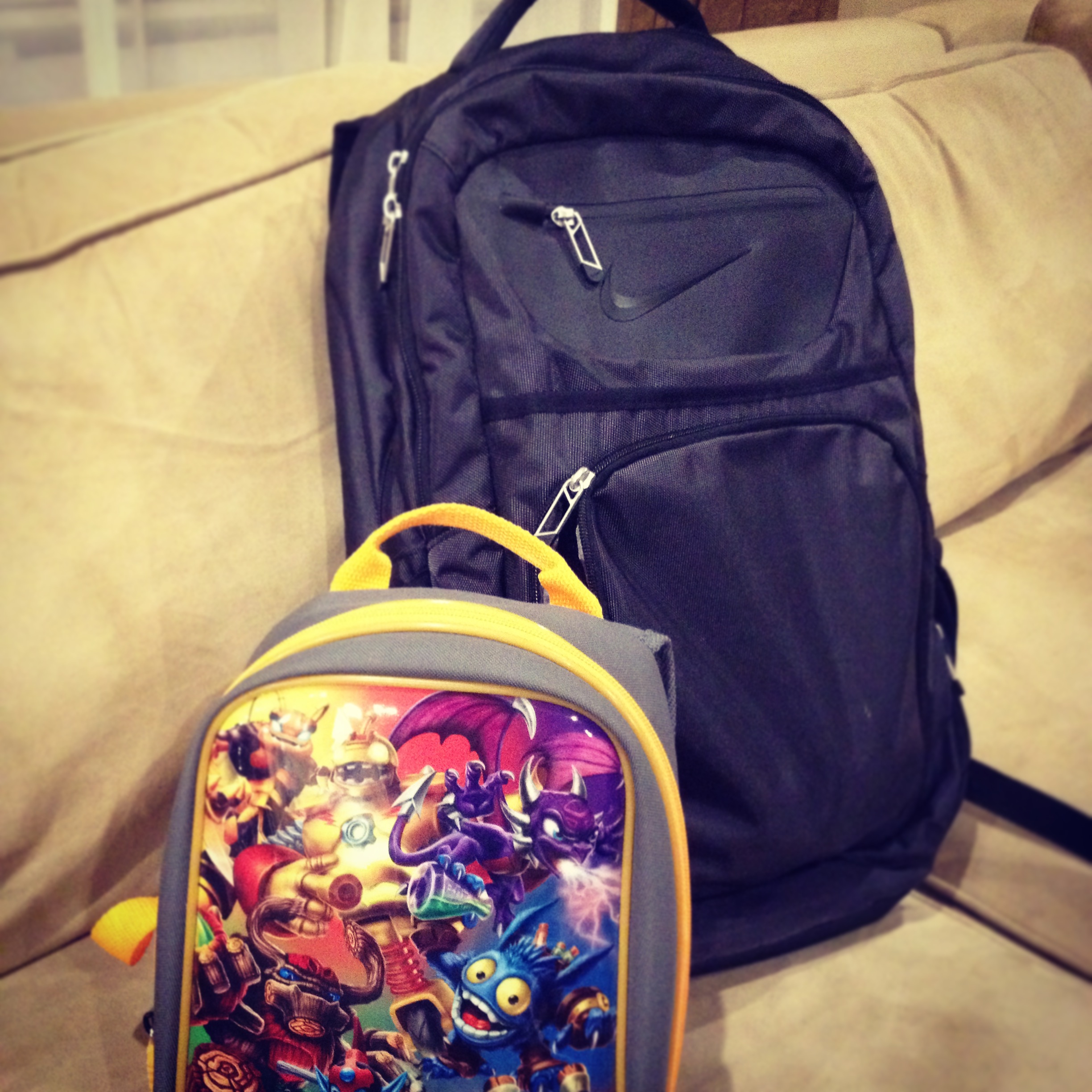 It’s funny now, looking back. The first backpack leads to another, and then another. Cartoon characters make way for skater styles, and before you know it, you’re over 40 – lugging your checkpoint friendly, Nike, denier nylon techie essential backpack onto an airplane to Montreal. The thing is loaded to the hilt with your laptop, iPad, iPod, noise canceling headphones, neck pillow, snacks, water and all the other travel necessities… most of which, you really don’t need. Looking around, half of the passengers carry packs as well. They’re supposed to make the trip easier, but they weigh way too much, and you almost throw your back out trying to get it up into the overhead bins.